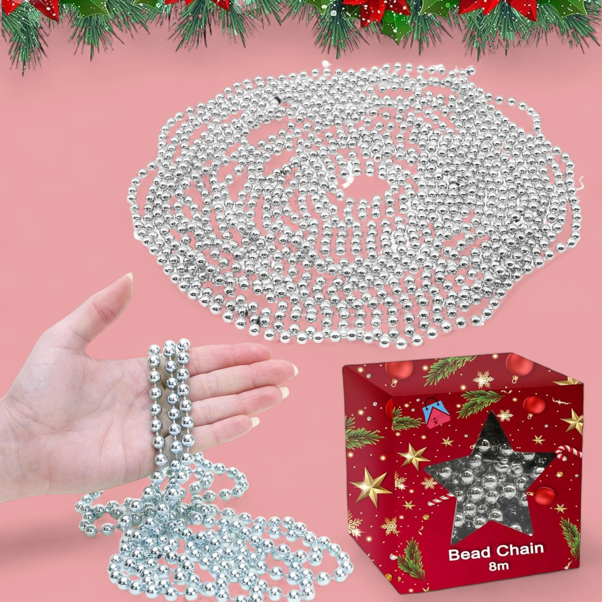 Whether you’re aiming for a classic, elegant look or something with a bit more pizzazz, this bead chain is the perfect addition to your holiday toolkit. Fill your home with festive cheer and charm by using the XMAS Tree Bead Chain. Your holiday decorations will never look this dazzling again!