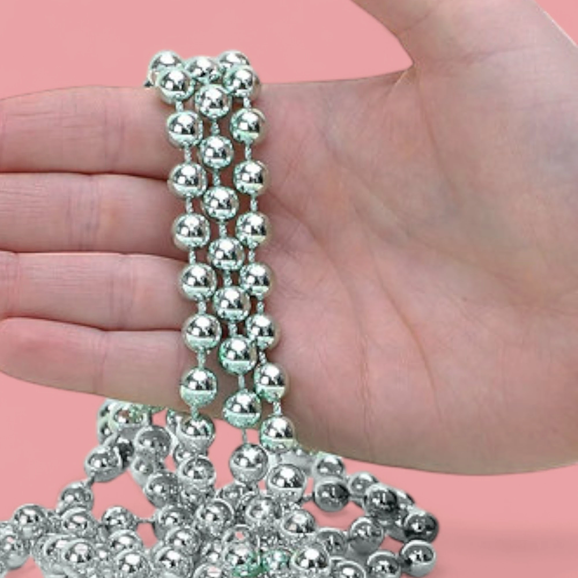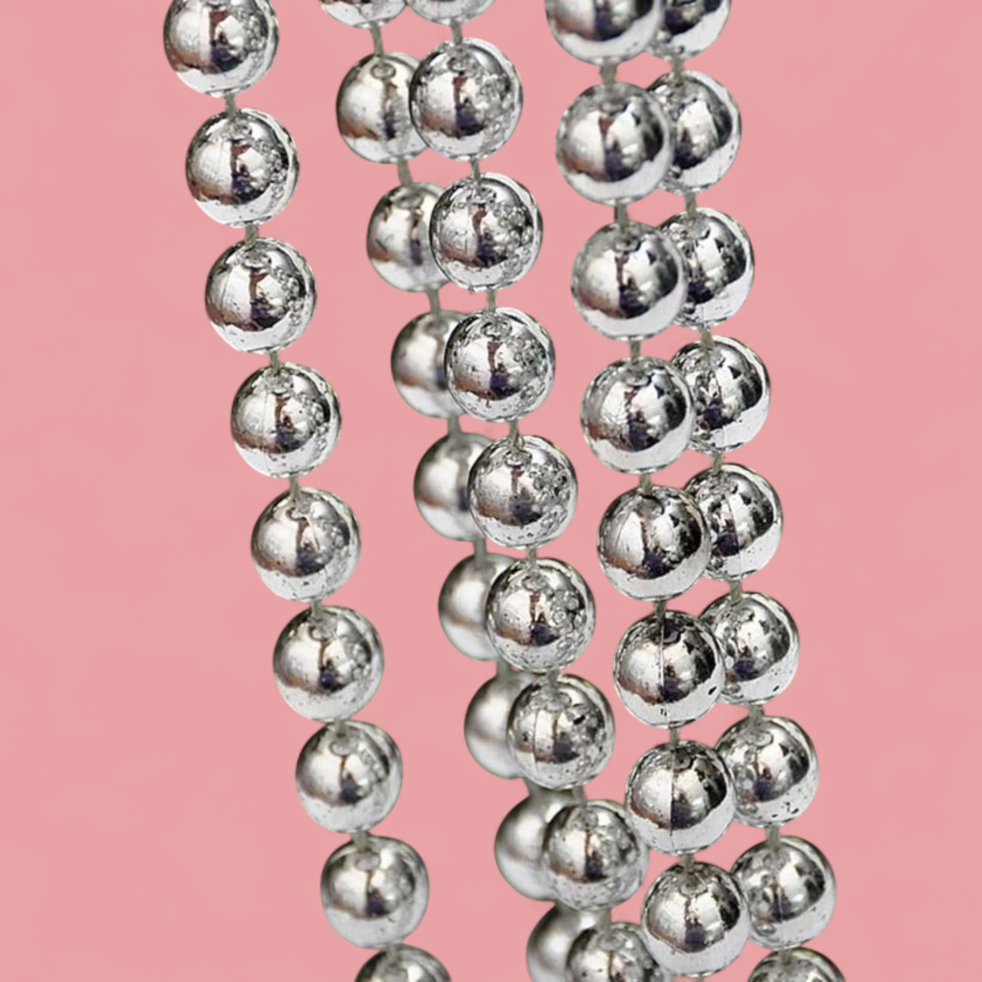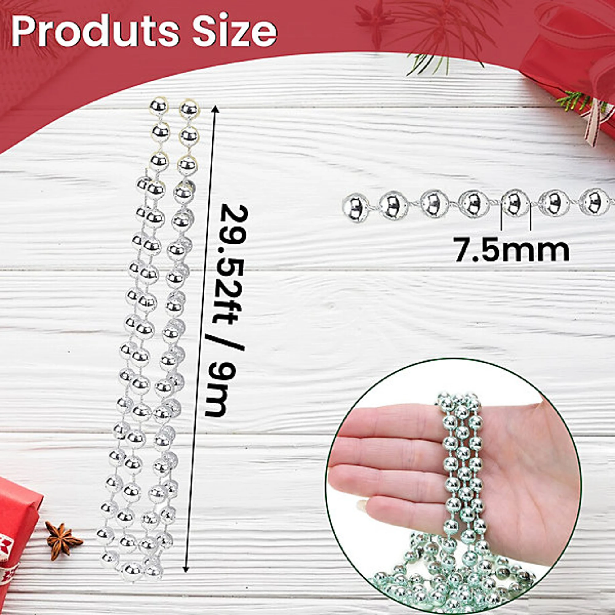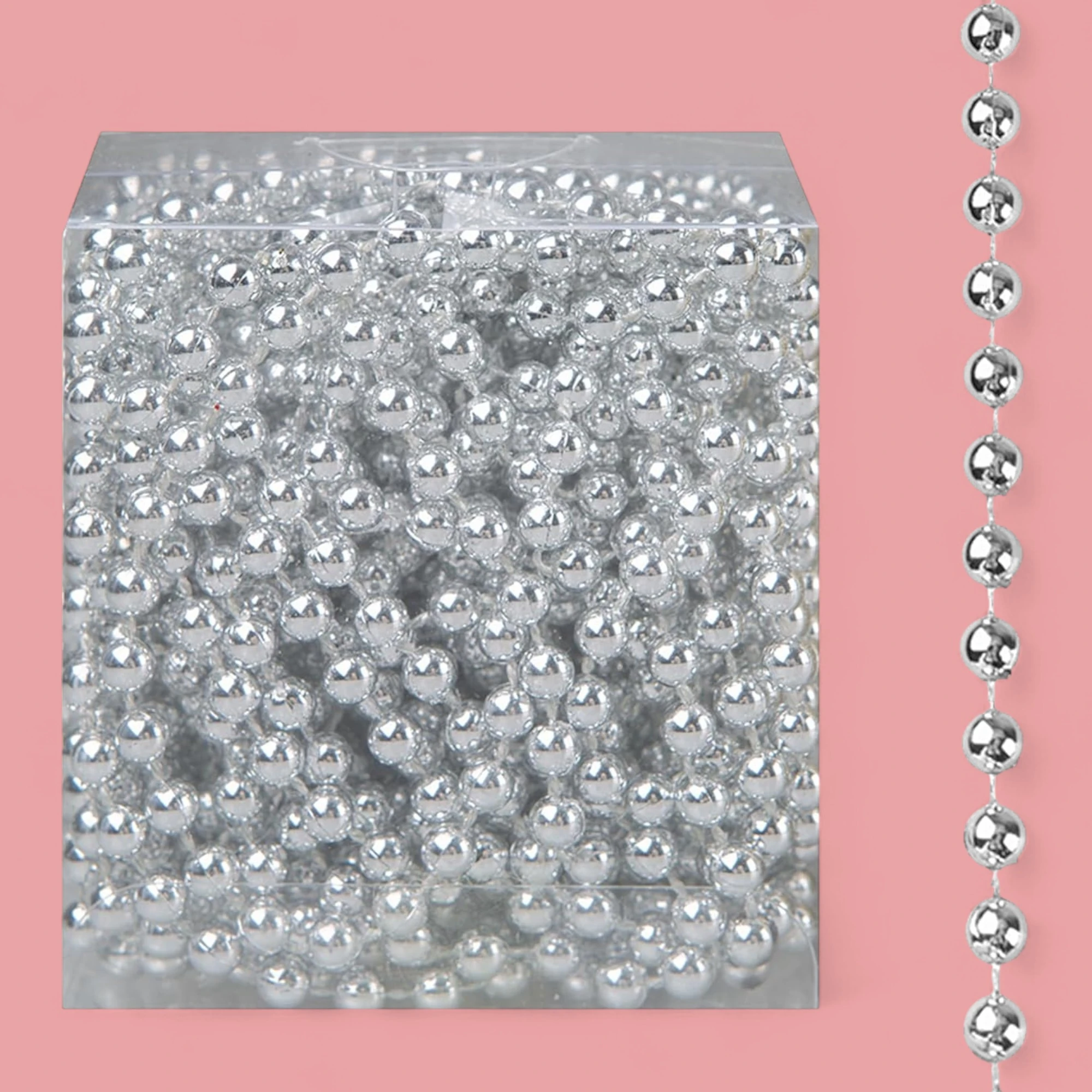 Add a touch of sparkle to your holiday decorations with the XMAS Tree Bead Chain. This stunning 4-meter bead chain features elegant 8mm silver beads that catch and reflect light beautifully, creating a festive ambiance in your home.