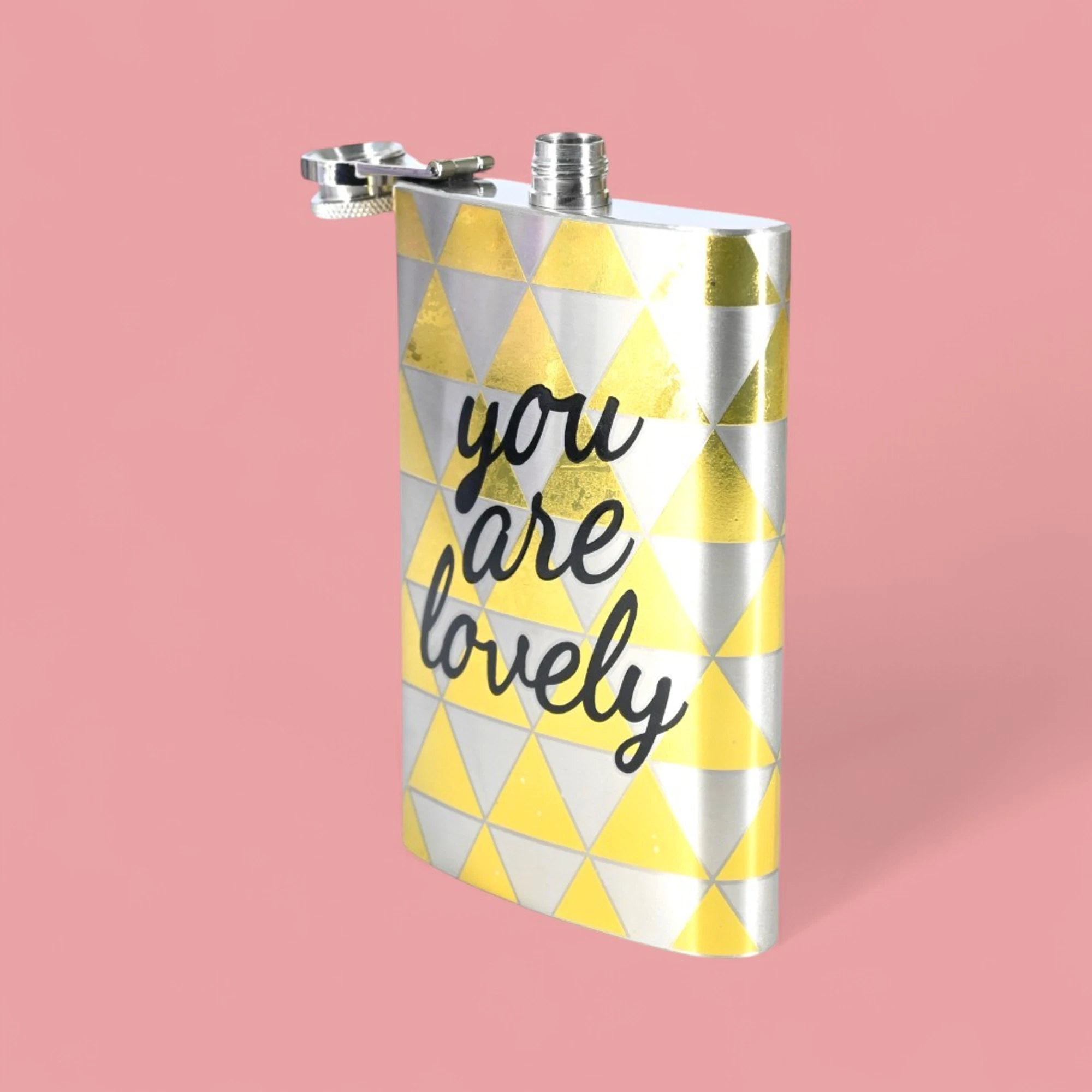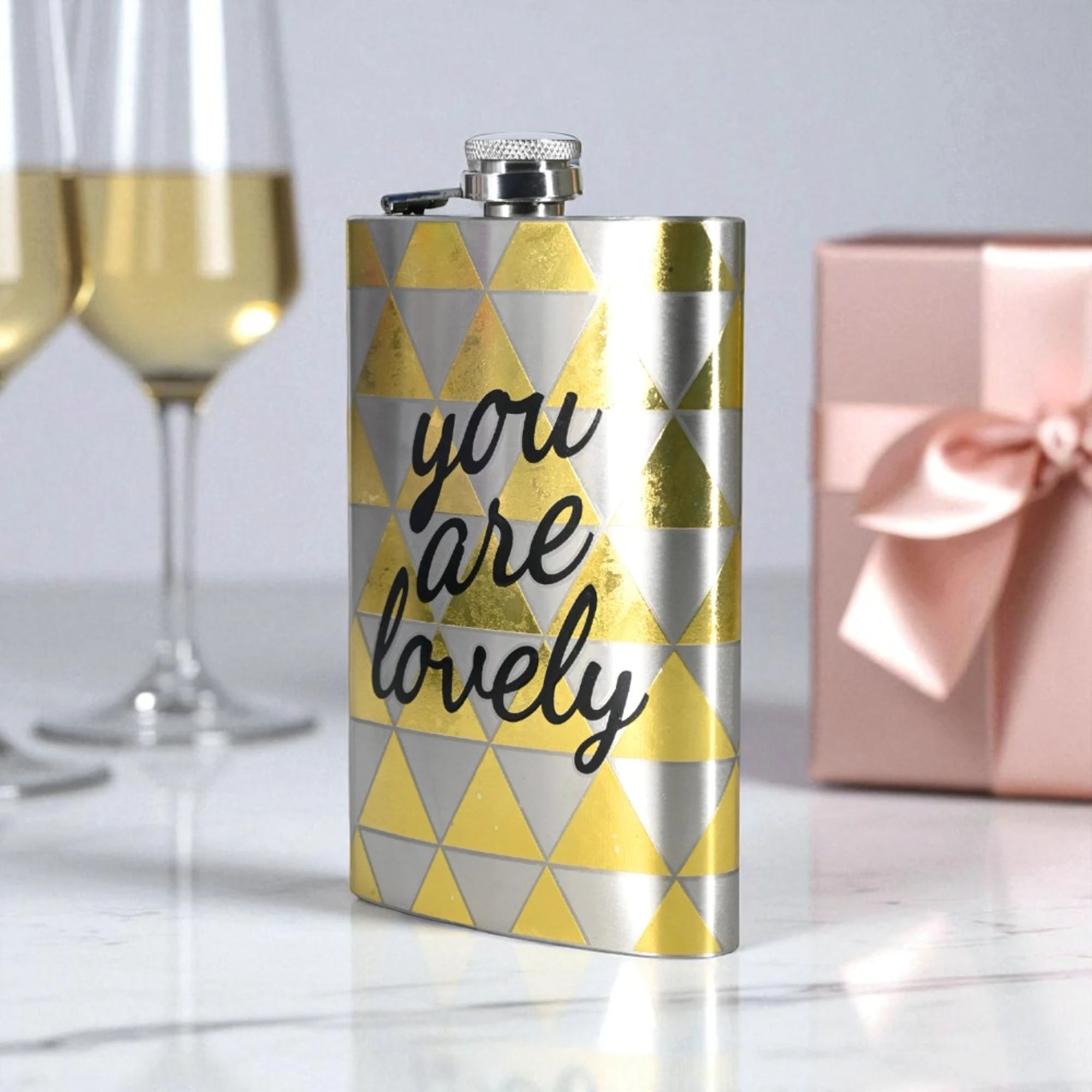 Every sip is a reminder with the YOU ARE LOVELY 9 OZ Hip Flask. Perfect for any adventure, it’s compact yet holds just the right amount to keep the good times flowing. Made from durable stainless steel, it’s designed to withstand drops and dings.